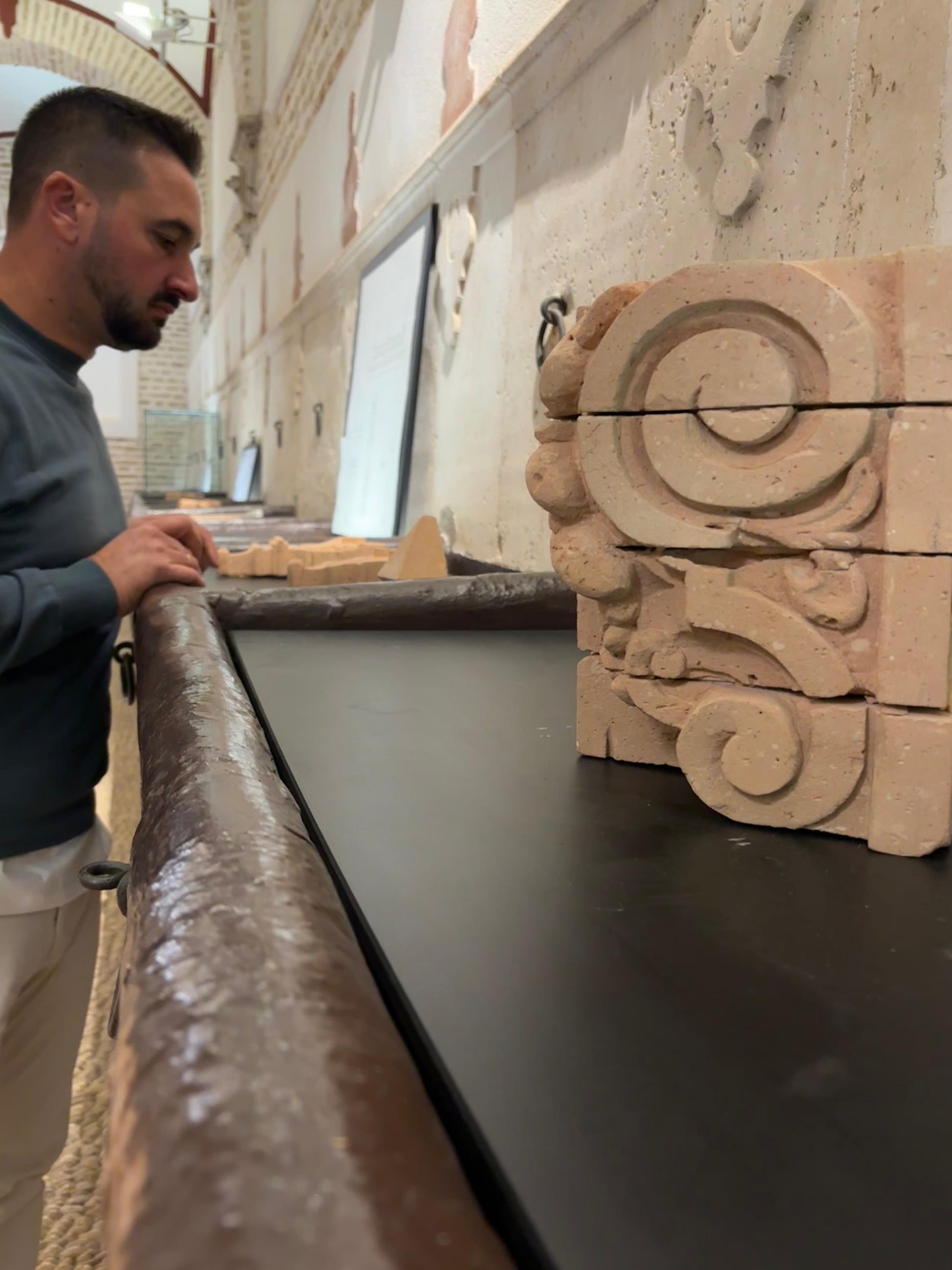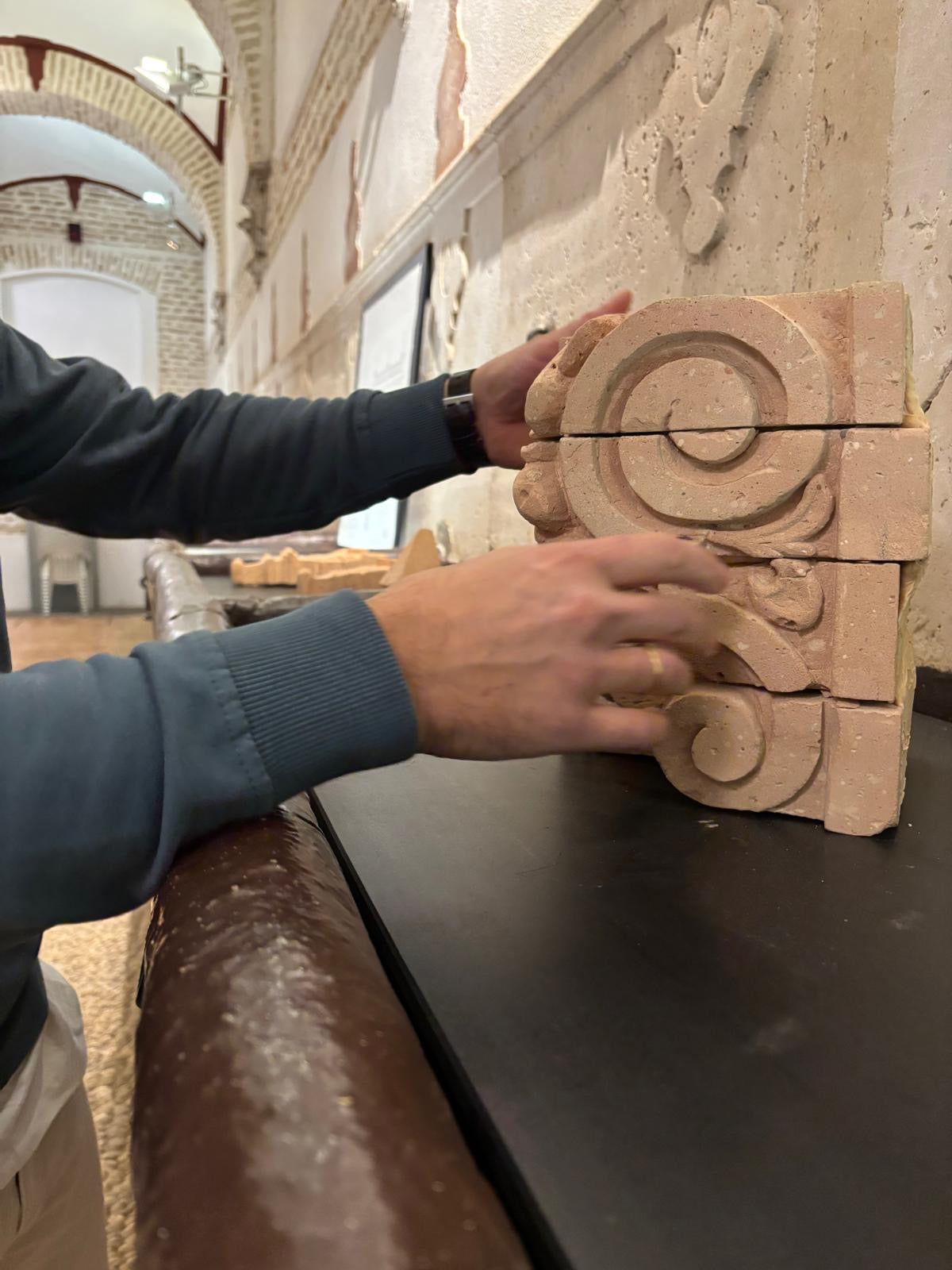 Como siempre esta pieza está tallada sobre 4 ladrillos de barro cocido, de forma totalmente artesanal, con la ayuda de herramientas como, gubia, escofina, maza portuguesa, lijas....